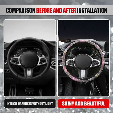 • ▶Stylish and Attractive Design of Diamond Steering Wheel Cover, Glittering in Lights: Glittering through the windshield, illuminating your car. Perfect gift for women and girls.